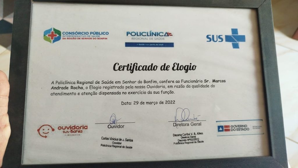 Nem o certificado de elogio que o motorista Marcos Andrade Rocha guarda com carinho foi suficiente para ele manter seu emprego. Motorista do micro-ônibus que leva pacientes de Queimadas até a Policlínica de Senhor do Bonfim, ele recebeu um aviso prévio sobre sua demissão dias depois que o novo prefeito, Ricardo Lopes (PSD), assumiu o mandato. Pacientes já se mobilizam e realizam um abaixo-assinado para que o desligamento não ocorra.