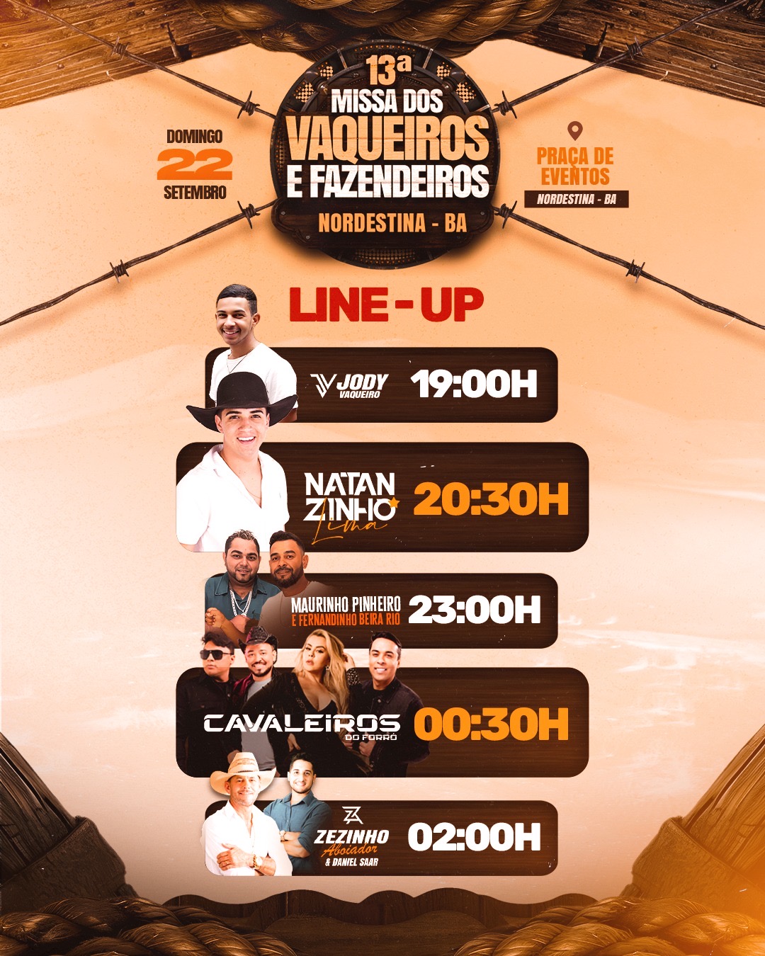 A tradicional Missa dos Vaqueiros e Fazendeiros acontece neste domingo (22) em Nordestina, com uma vasta programação.