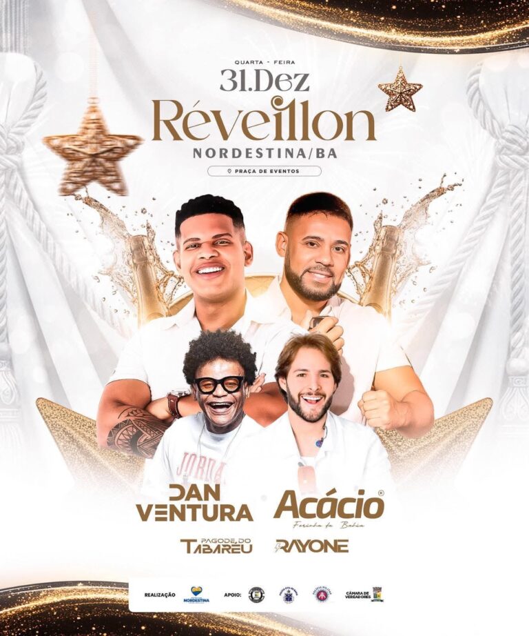 A Prefeitura de Nordestina, no Nordeste da Bahia, anunciou, nesta terça-feira (2/12), a grade das atrações do Réveillon 2026. A mistura de ritmos vai marcar a virada de ano.