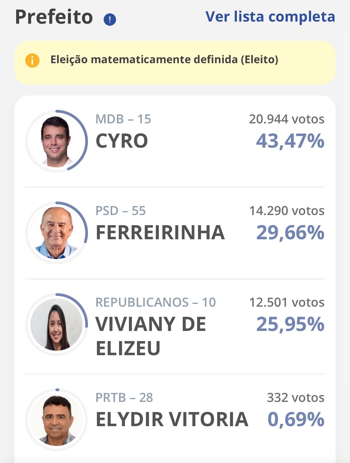 Com união com o PT para as eleições, Cyro pretende manter o modelo da gestão atual do município. O emedebista derrotou Ferreirinha; Viviany; Elydir e Jorge Rock.